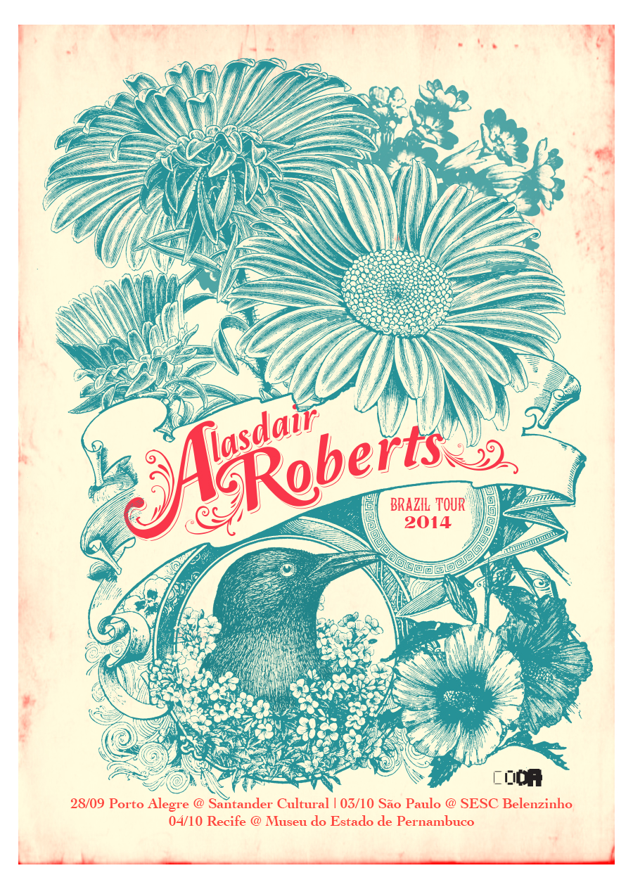Here is a poster for Alasdair Roberts’ 2014 tour of Brazil. It was designed by Dani Hasse.